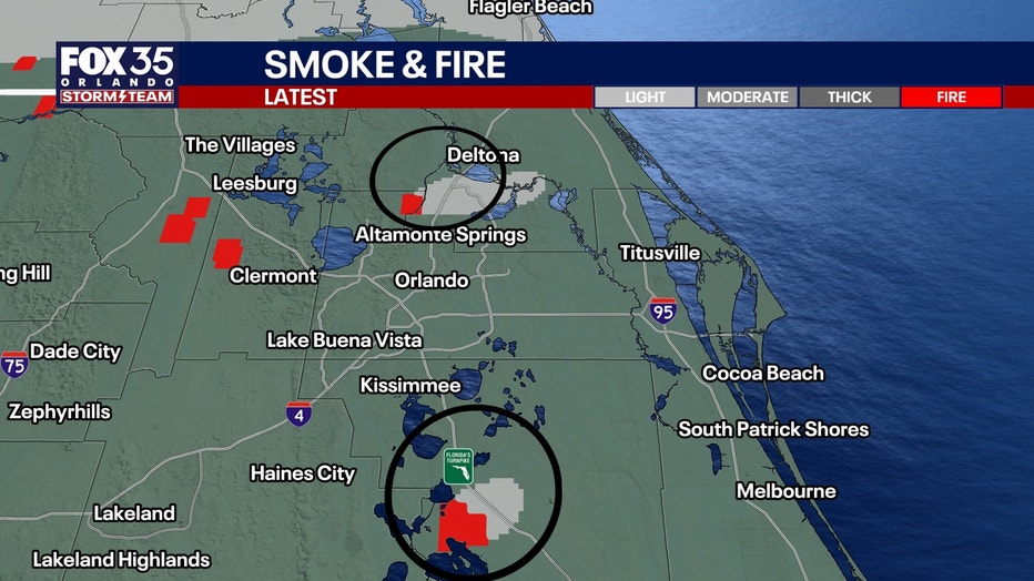 FOX 35 meteorologist Noah Bergren shared an image of the smoke and fire on the map. Some of the fire is reportedly visible on radar. There is a second fire reportedly burning south of Kissimmee as well.