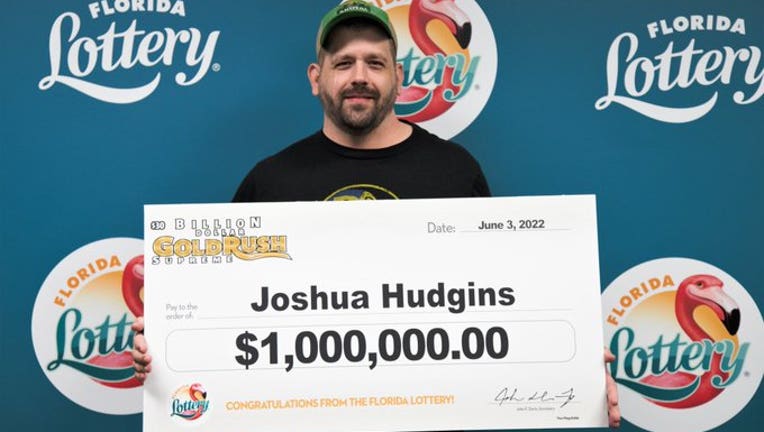 Officials say Joshua Hudgins, 39, of Winter Garden, played the $30 BILLION DOLLAR GOLD RUSH SUPREME scratch-off game and claimed one of the top prizes.