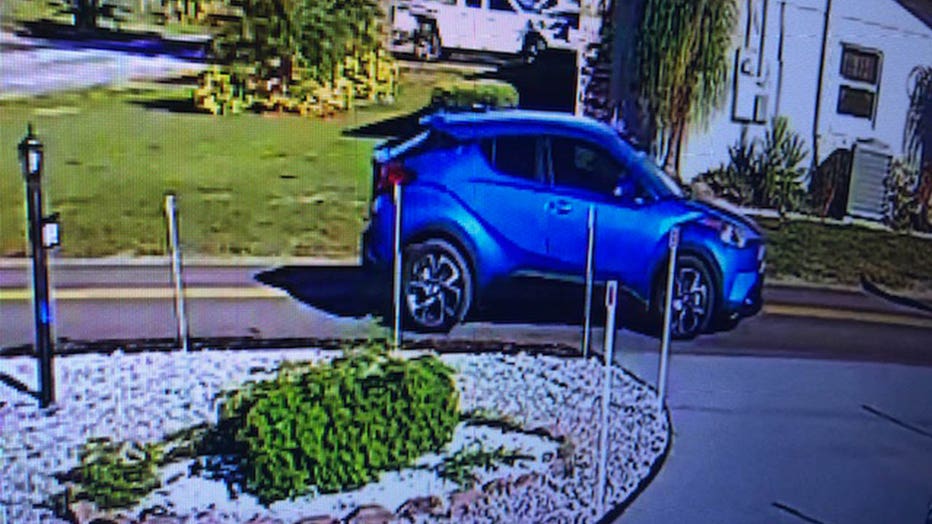 Looking at a home surveillance photo form a second neighbor, police say the driver was in a bright blue Toyota C-HR, now presumably with damage to the front passenger side and fender.