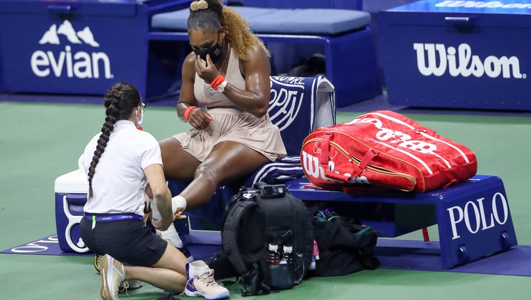 NEW YORK (AP) - Serena Williams already was struggling to keep up in a fast-paced U.S. Open semifinal when she stopped behind the baseline after a third-set point and leaned over. She held that pose for a bit then clutched at her left ankle and asked for a trainer.