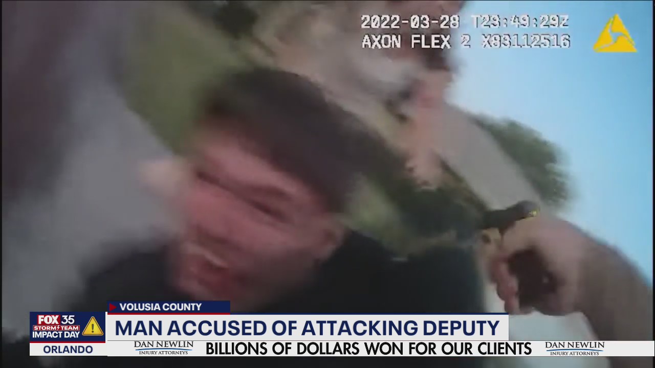 A 22-year-old Deltona man is facing eight felony charges after tackling a deputy during a violent fight, according to the Volusia County Sheriff's Office. The alleged fight started when the suspect?s girlfriend said she saw him forcibly kiss his 16-year-old stepsister.