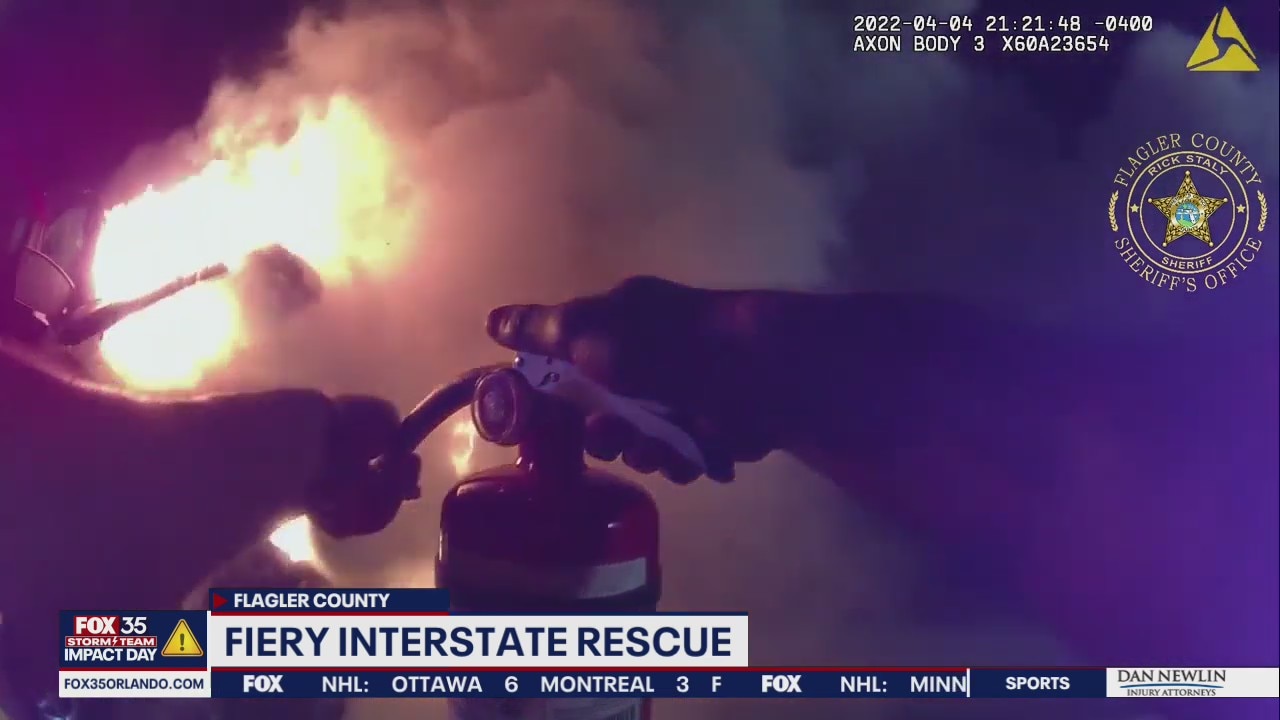 Body camera video has been released of a fiery crash on I-95 in Flagler County. A off-duty detective helped get 2 injured children to safety.
