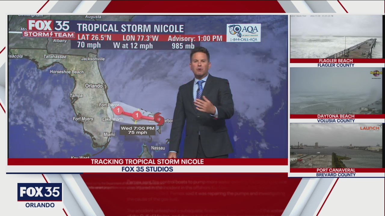 Tropical Storm Nicole is nearing hurricane strength on its path toward Florida and has made landfall in the Bahamas Wednesday afternoon.
