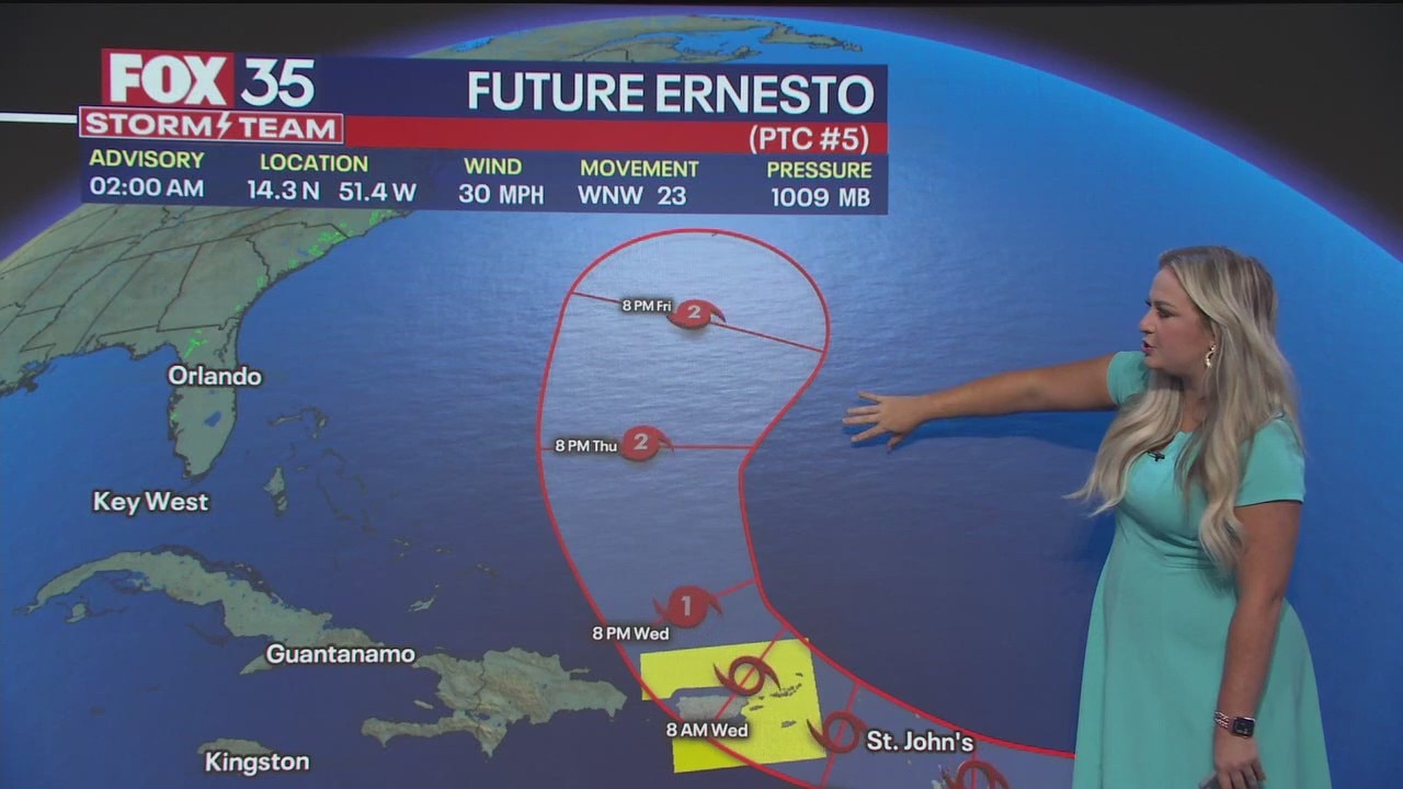 Future Hurricane Ernesto is set to form this week. The latest track shows the storm curving away from the United States.