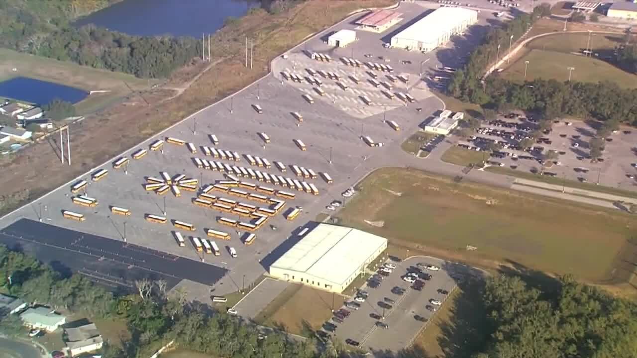 The Pine Hills School Bus Depot arranged buses at the depot to spread a holiday message to those in the sky. SkyFOX caught the message Thursday morning.