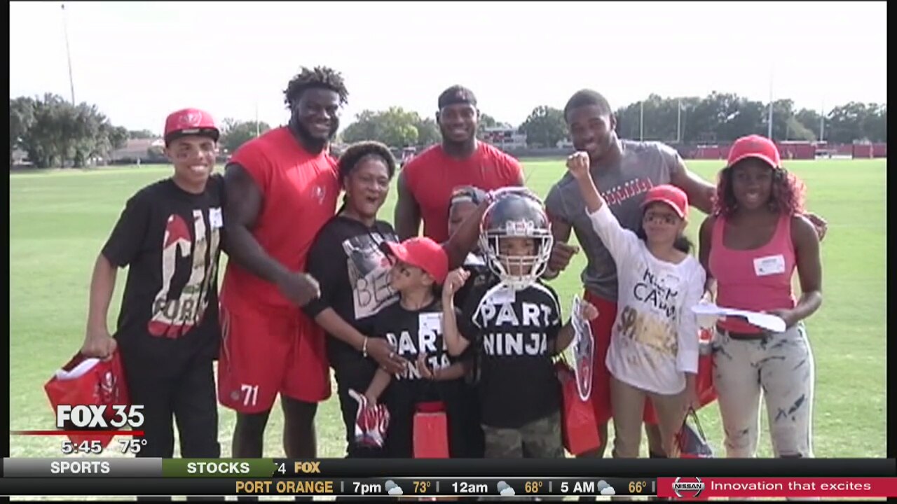 Bucs host kids who lost parents in crash