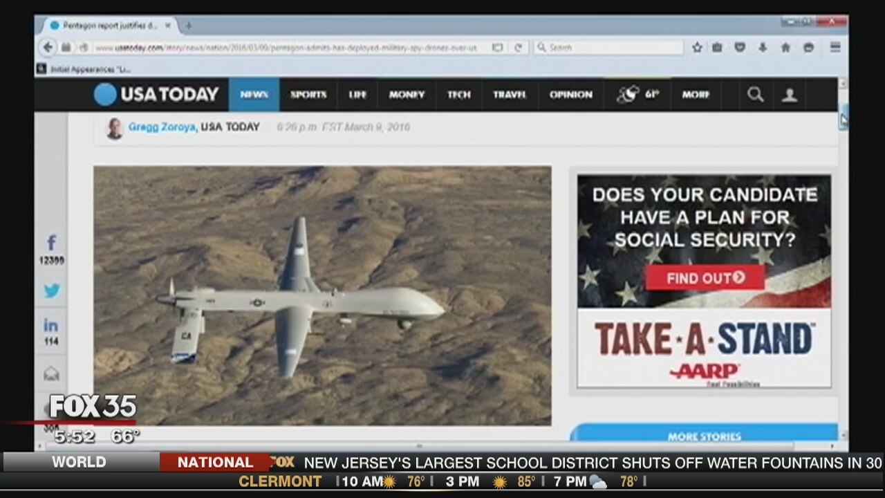 Headline: Pentagon flew drones over US officials say