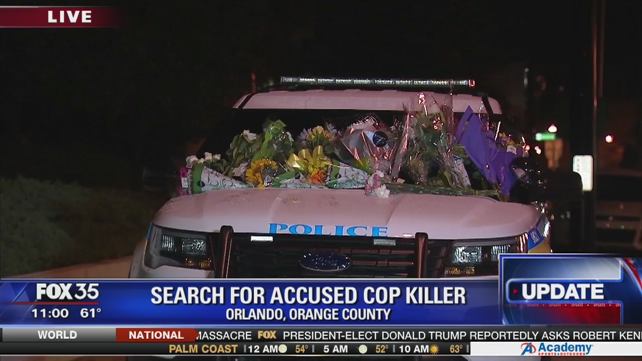 Flowers cover car of fallen officer