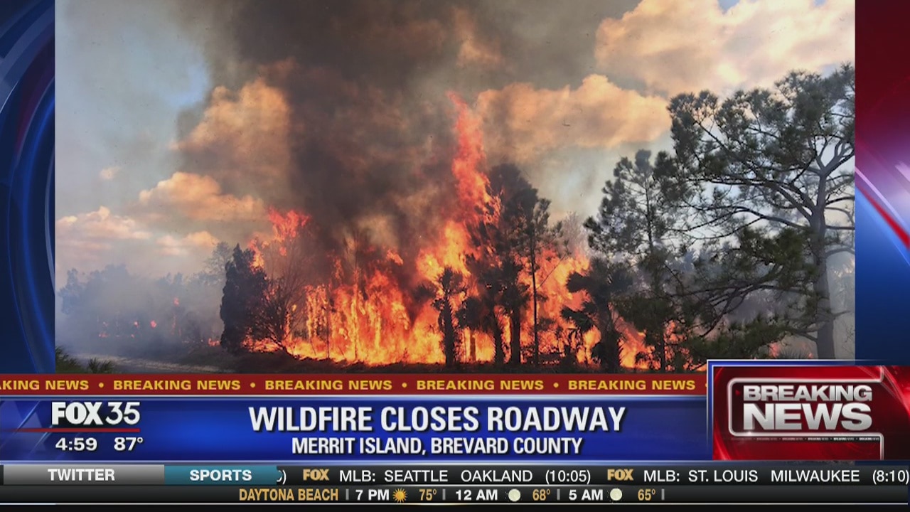 Wildfire closes roadway in Merritt Island
