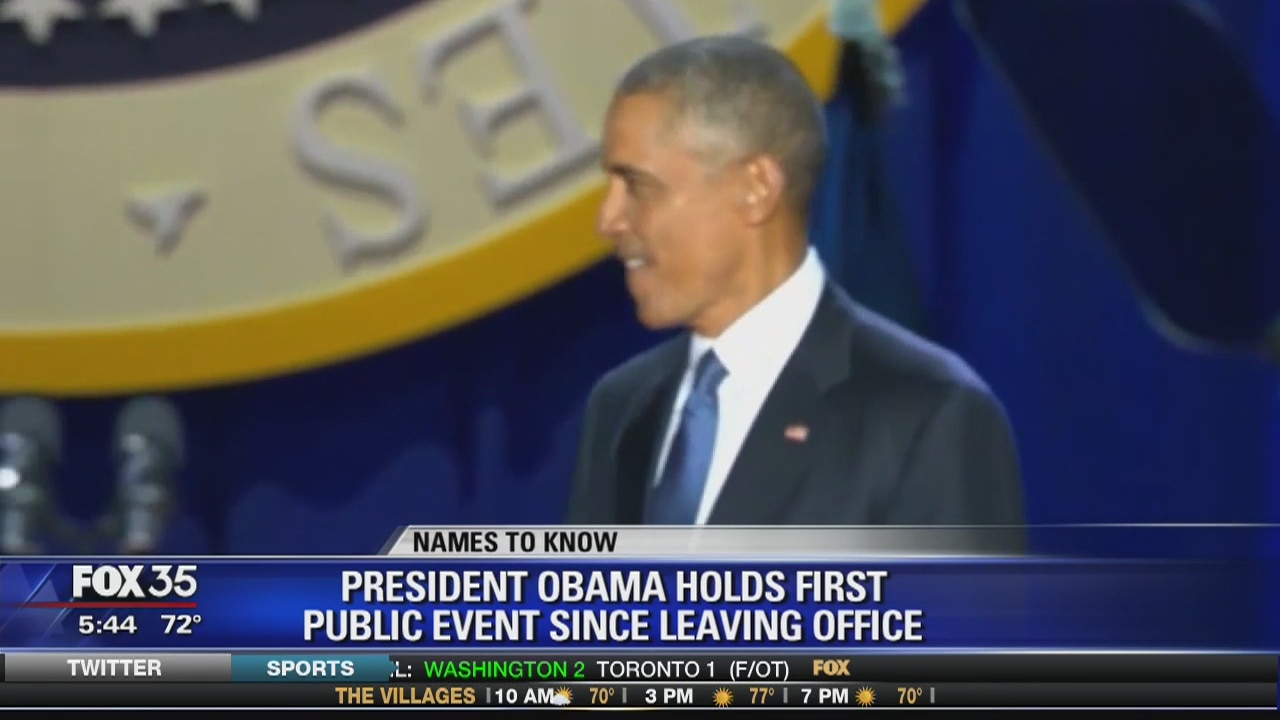 President Obama holds first public event since leaving office