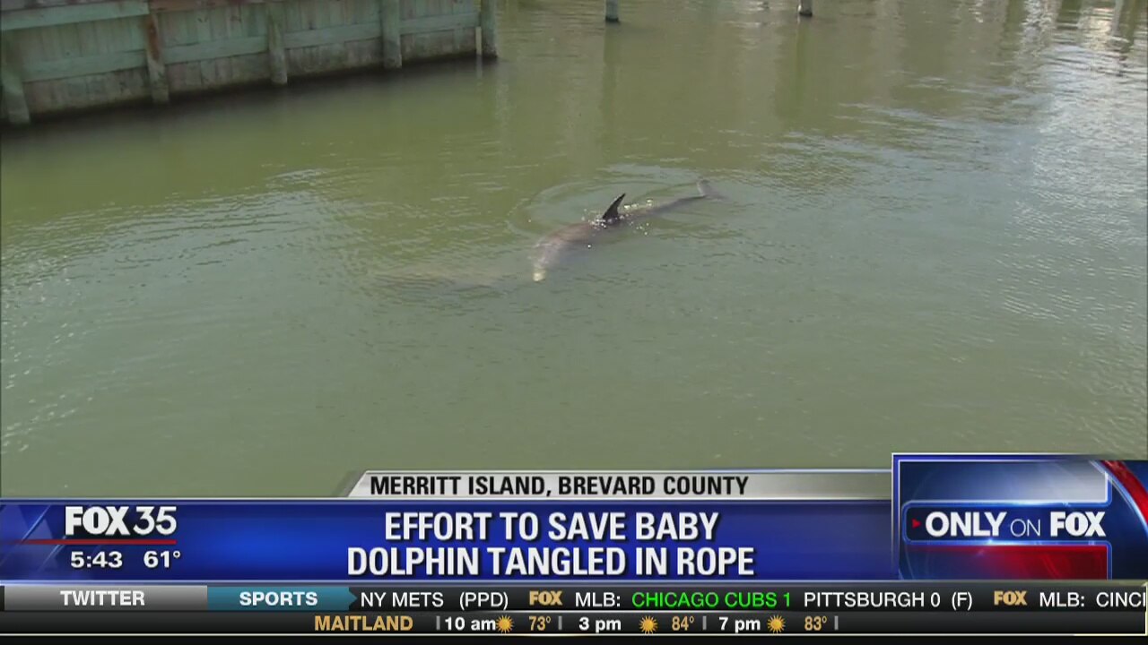 Effort to save baby dolphin tangled in rope