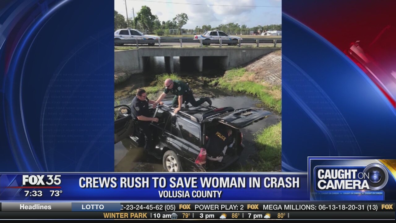 Crews rush to save woman in crash