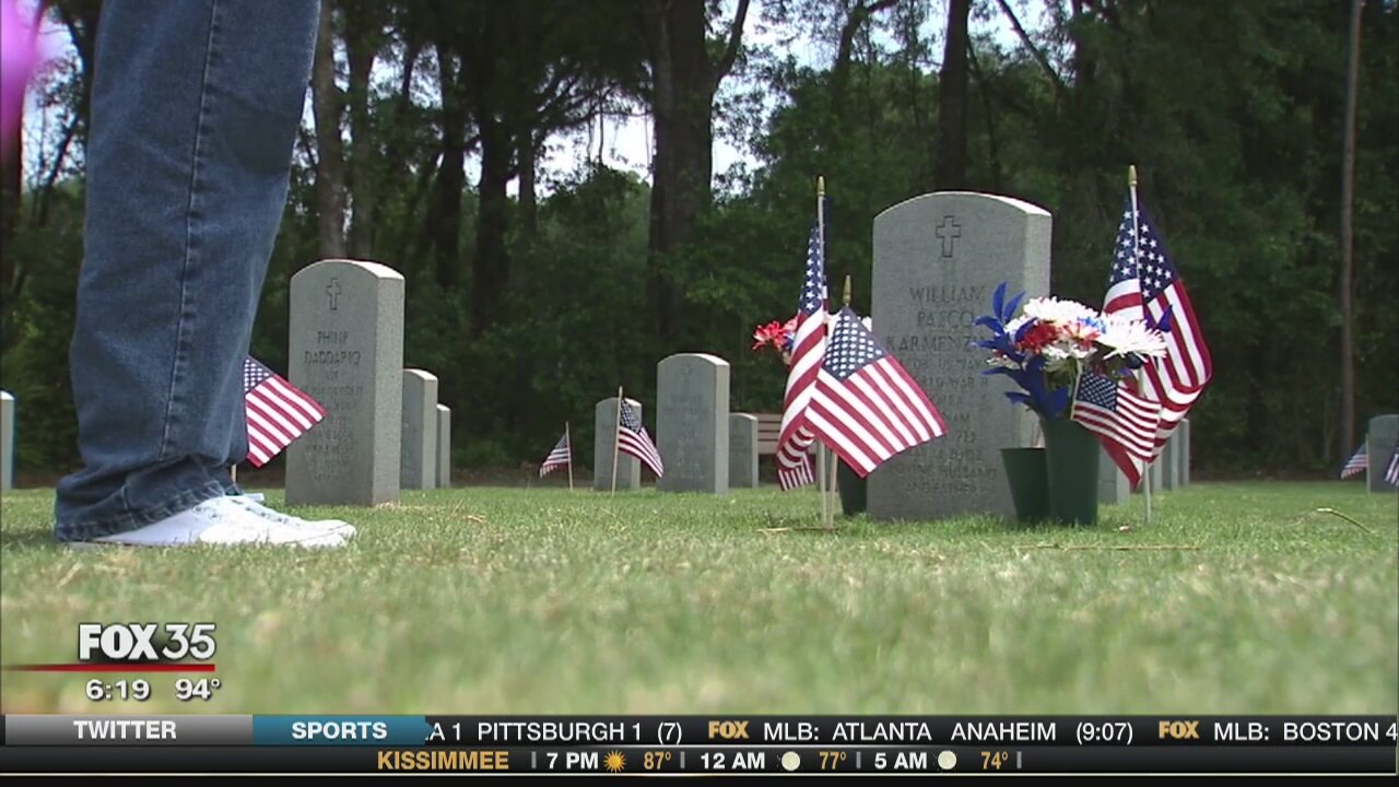 Flags placed on graves of fallen heroes