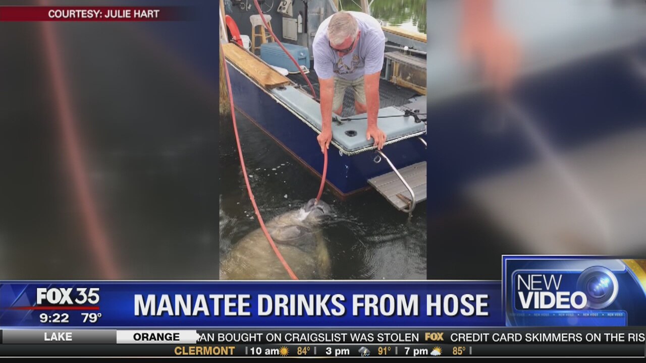Manatee drinks from hose