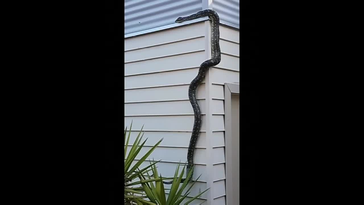 Snake climbs up house in Australia