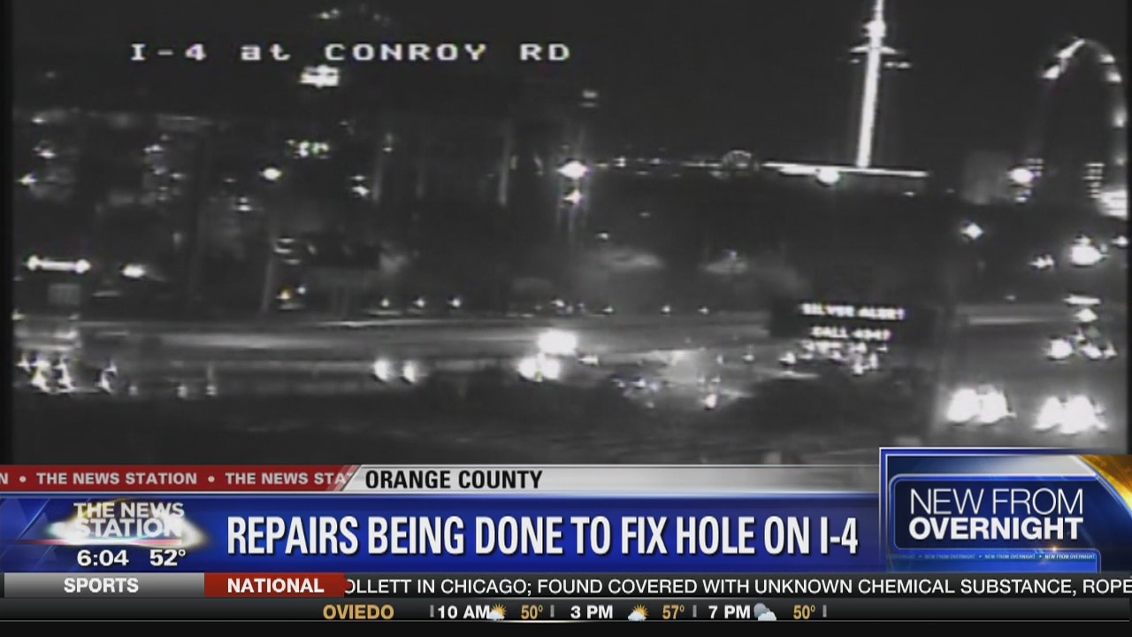 Repairs being done to fix hole on I-4