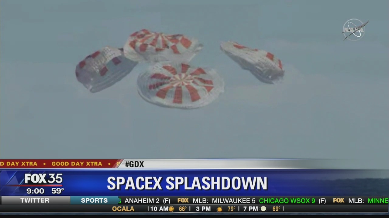 SpaceX splashes down into Atlantic