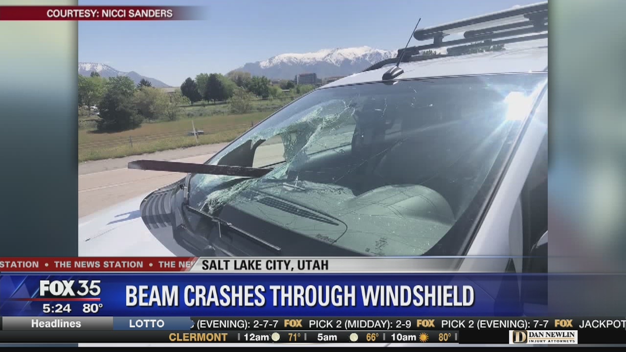 Beam crashes through car windshield