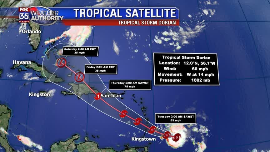 Tropical Storm Dorian continues to strengthen, could become a hurricane this week