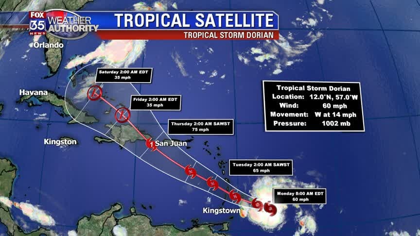 8 a.m. update: Tropical Storm Dorian continues to strengthen