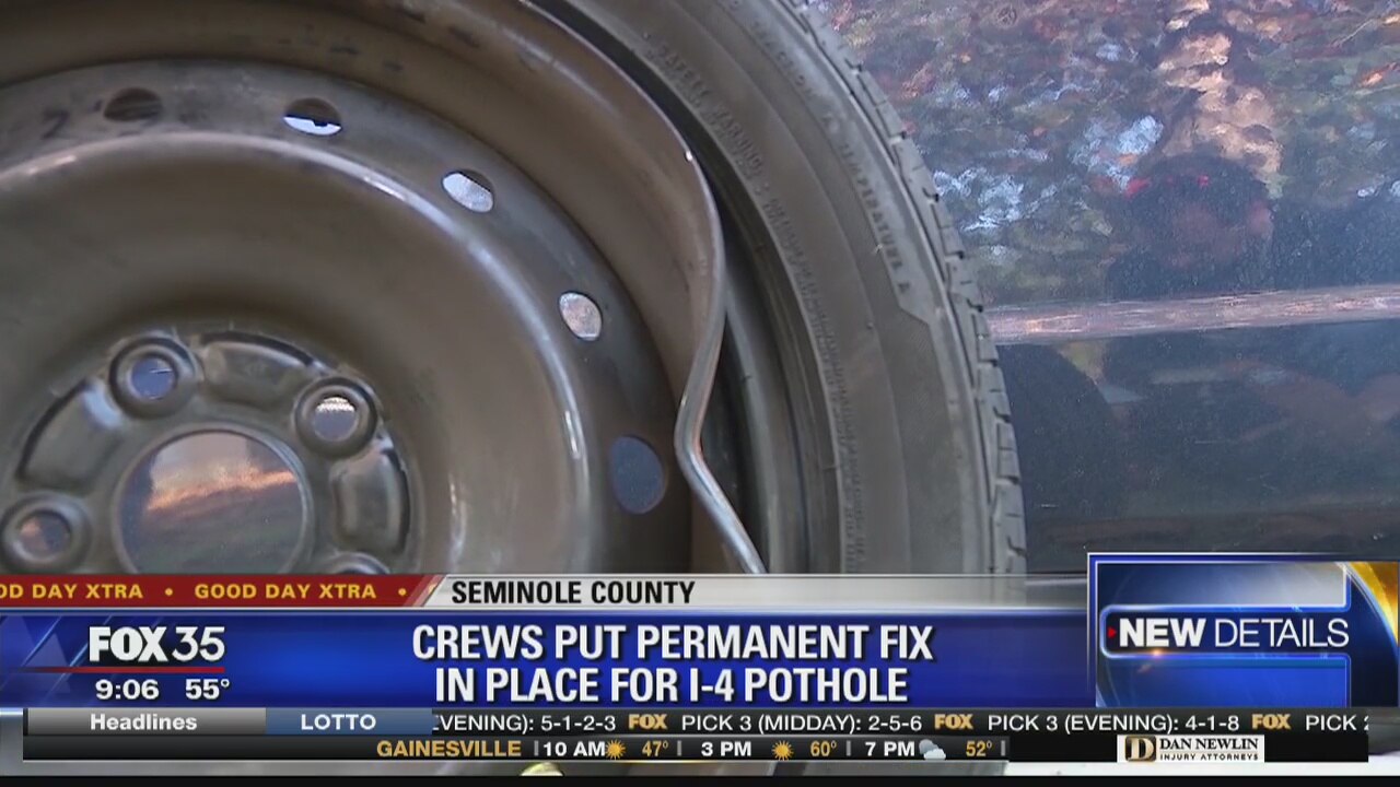 Many cars suffered flat tires when a pothole was discovered on I-4. So who pays for the damage?