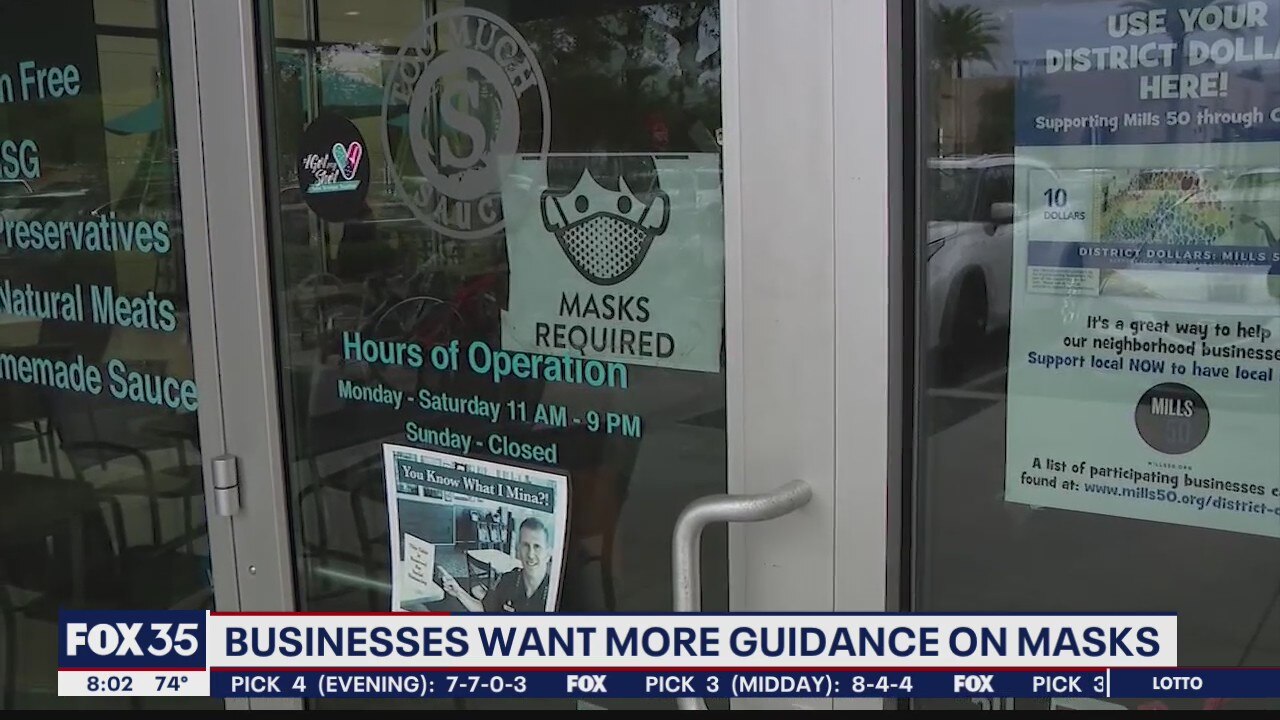 The CDC on Thursday eased mask-wearing guidance for fully vaccinated people, allowing them to stop wearing masks outdoors in crowds and in most indoor settings. However, some Central Florida businesses said they need more guidance before changing mask policies.