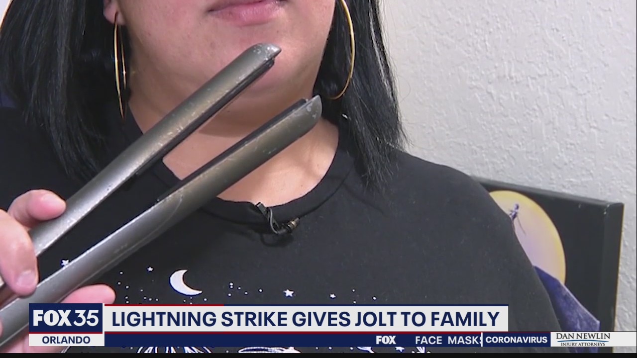 A lightning strike gave a jolt to a family, including a mom who was straightening her hair when she was zapped.