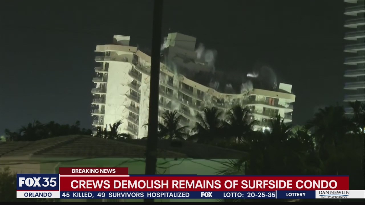Crews imploded the remainder of the Surfside condo site late Sunday night.
