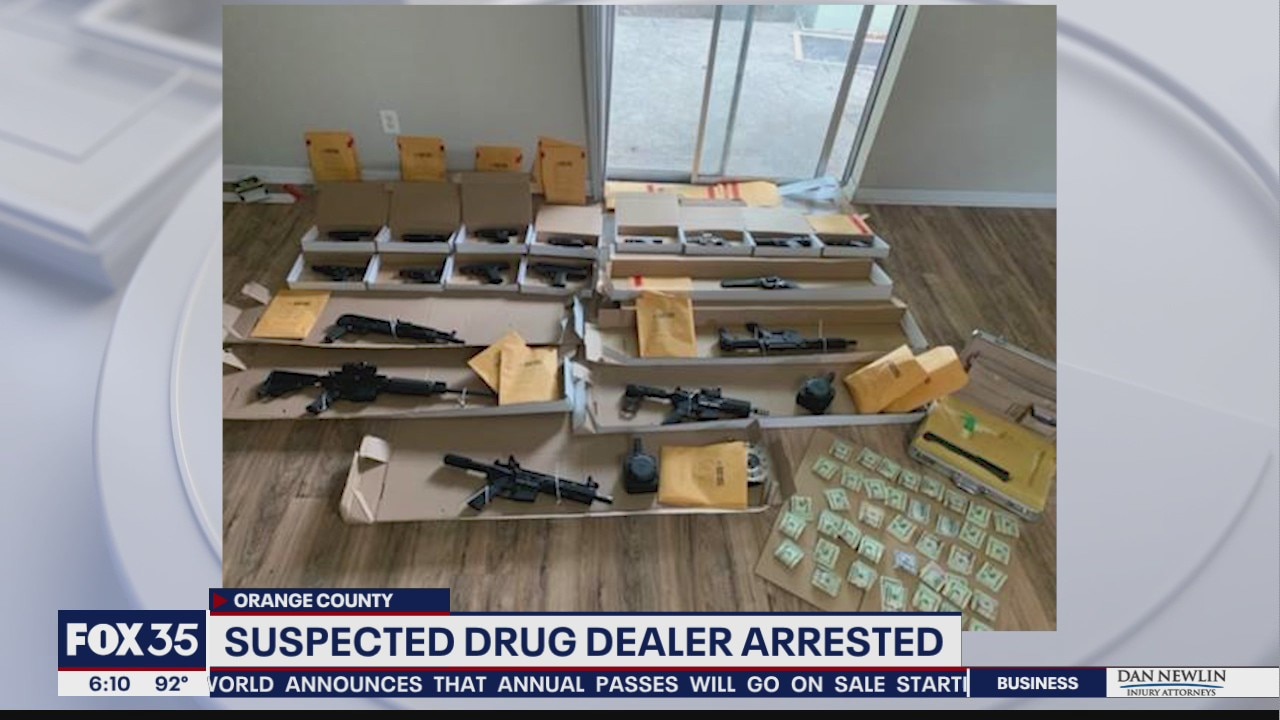 Darrion Fluker, 23,?was arrested after Orange County deputies said they seized fentanyl pills and other drugs from inside his Orlando home. Deputies said they also found 18 guns in the house.