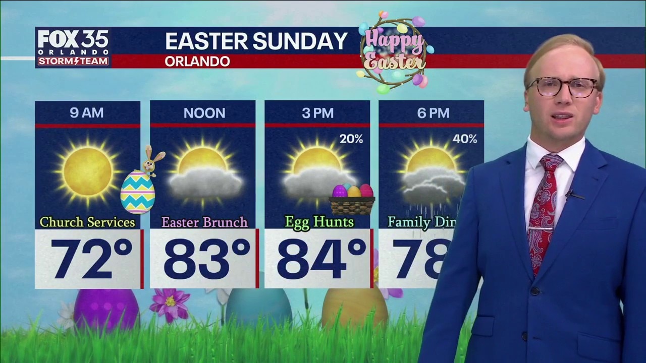 FOX 35 Storm Team Senior Meteorologist Noah Bergren is tracking Thursday evening showers, and the forecast for Easter weekend. How many showers on Easter Sunday?