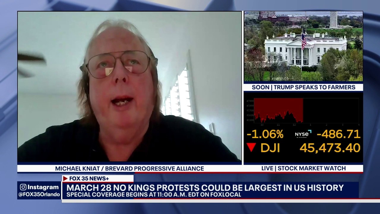 Michael Kniat with the Brevard Progressive Alliance joins FOX 35's Johnny Jackson via Zoom to preview the anti-Trump No Kings Protests scheduled for Saturday, March 28 could be the largest in U.S. history.