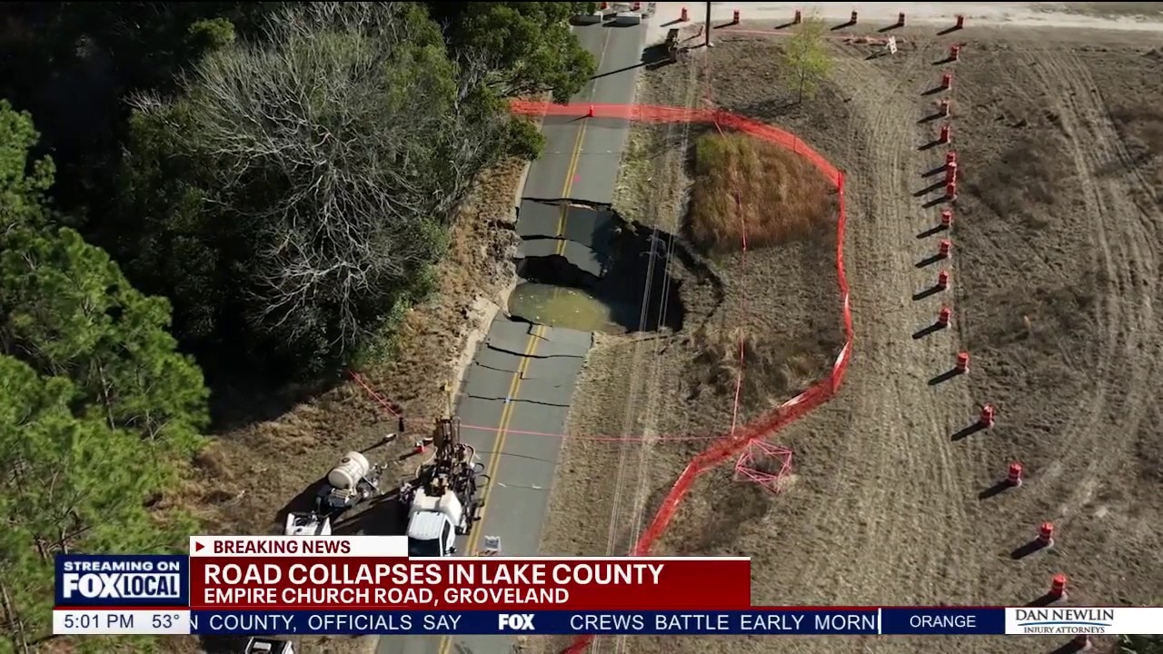 A stretch of Empire Church Road near Groveland was shut down Monday after a large depression opened in Lake County, forcing officials to close the roadway as crews investigated the cause.