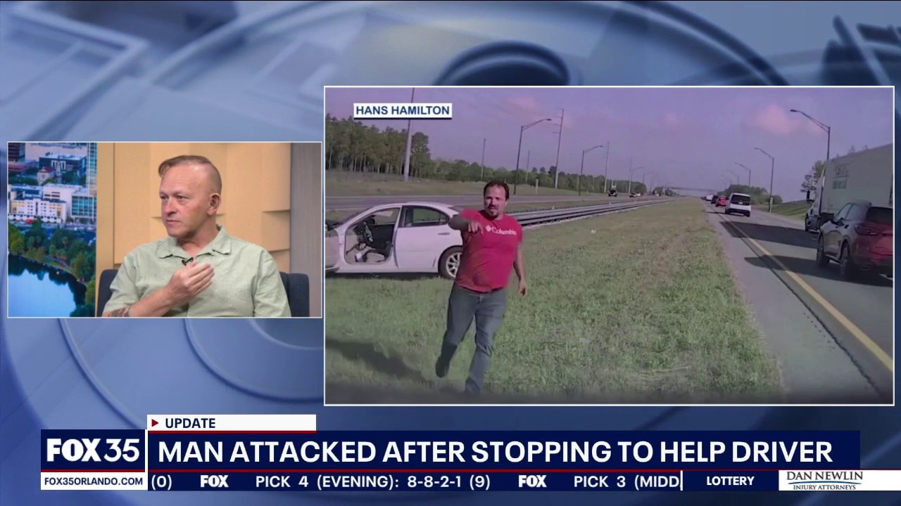 Hans Hamilton was attacked earlier this month after he stopped on State Road 429 to help a man who lying motionless next to a car. Hamilton, who suffered a brain bleed and broken ribs, joins Good Day Orlando to talk about the attack.