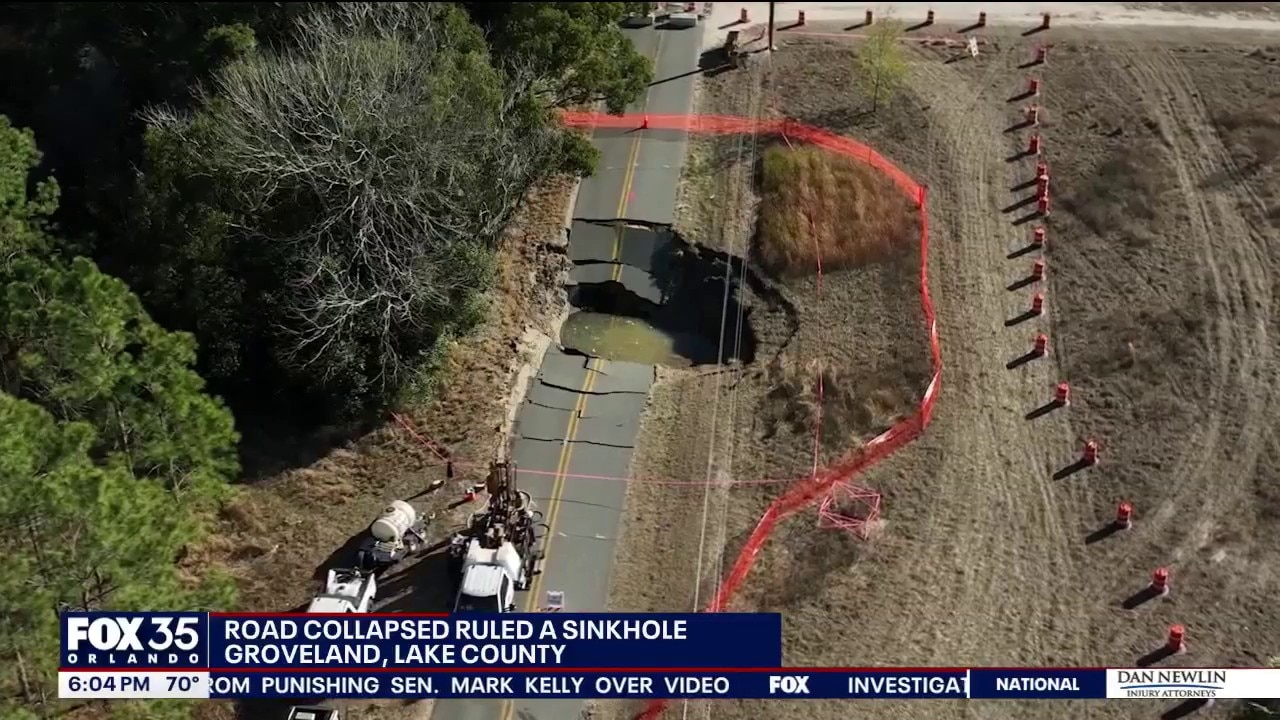 Officials on Thursday described a road collapse in Groveland as a sinkhole, and said it could cost about $2.5 million to rebuild the damaged stretch.
