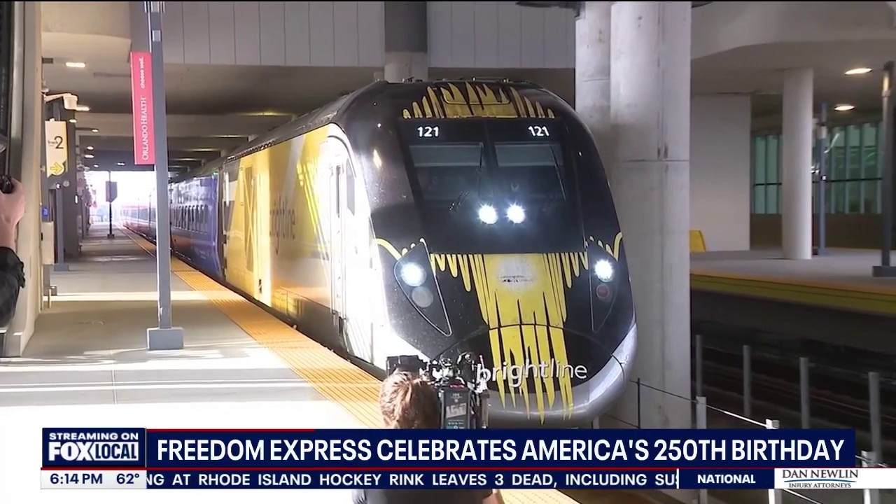 Brightline celebrated Presidents Day and America’s 250th birthday by unveiling its new train, the Freedom Express, at the Orlando station. The train features artwork honoring U.S. history, including Washington crossing the Delaware, Apollo 11, and Dr. Martin Luther King Jr. at the Lincoln Memorial.