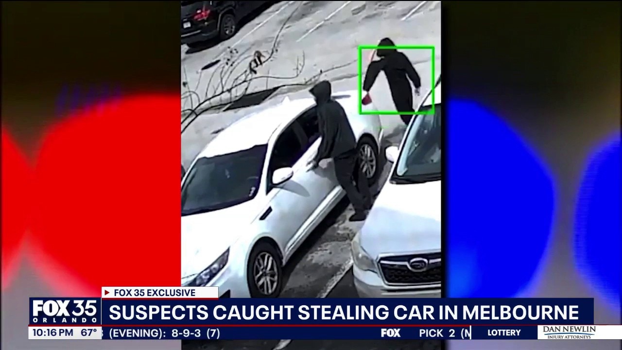 Police in Melbourne are searching for two suspects captured on surveillance video stealing a car parked outside an apartment in broad daylight.