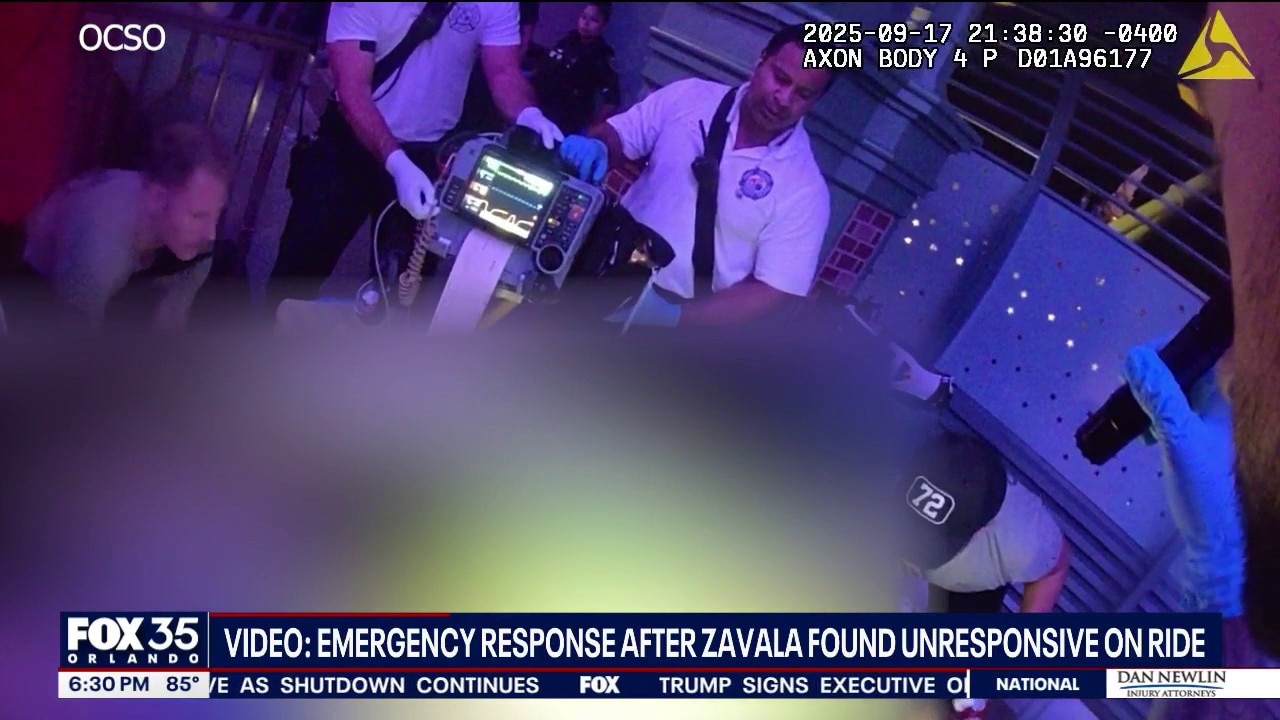 The Orange County Sheriff's Office released bodycam video from the night Kevin Zavala died after riding the Stardust Racers ride at Epic Universe. The bodycam shows the moments when deputies responded to the emergency call. Zavala became unconscious on the ride and was rushed to the hospital where he died. The Medical Examiner's Office ruled his death an accident.  Zavala's girlfriend was on the ride with him at the time. She said in the video that he hit his head after the first hill and she tried to hold him up, but couldn't due to the force of the ride. His family ultimately reached a resolution with Universal, attorneys said.