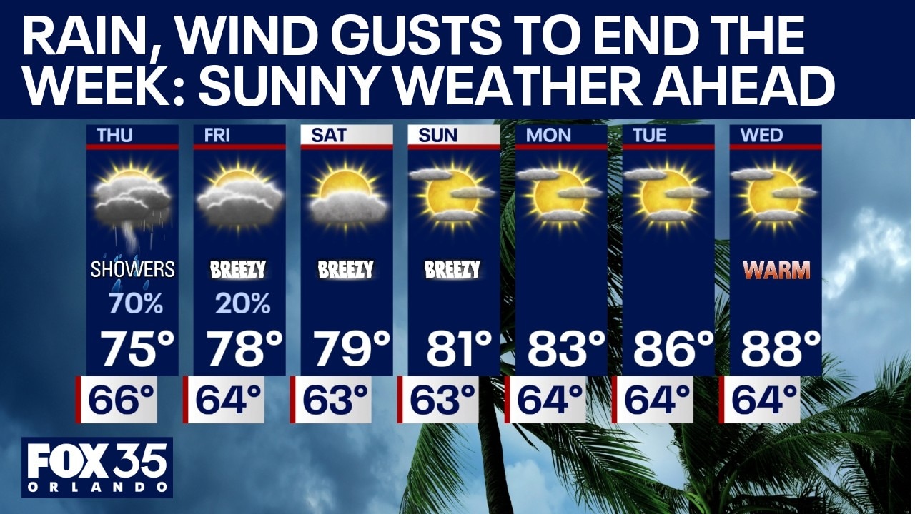 Orlando PM Weather forecast: Rain, gusty winds persist until the weekend