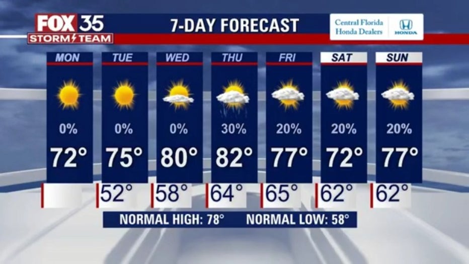 By Wednesday, Central Florida will warm back up, hitting the 80s once again.