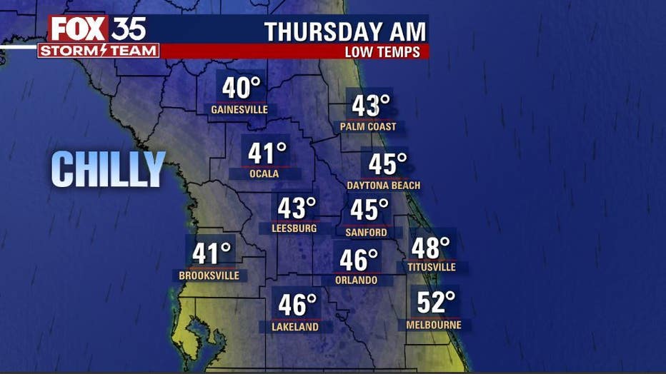Temperatures in the 40s can be expected at almost all Central Florida locations.