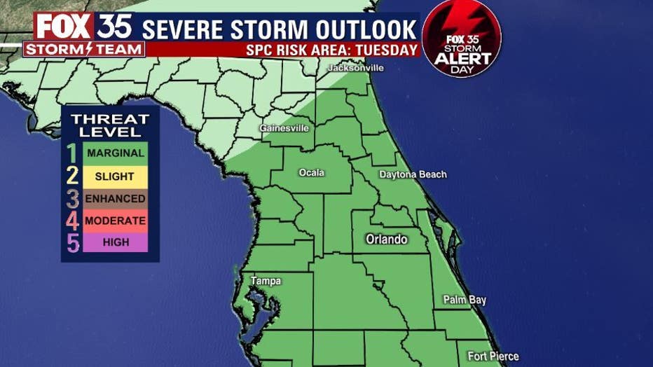 Strong to severe storms are possible on Tuesday, making Tuesday a FOX 35 Storm Alert Day.