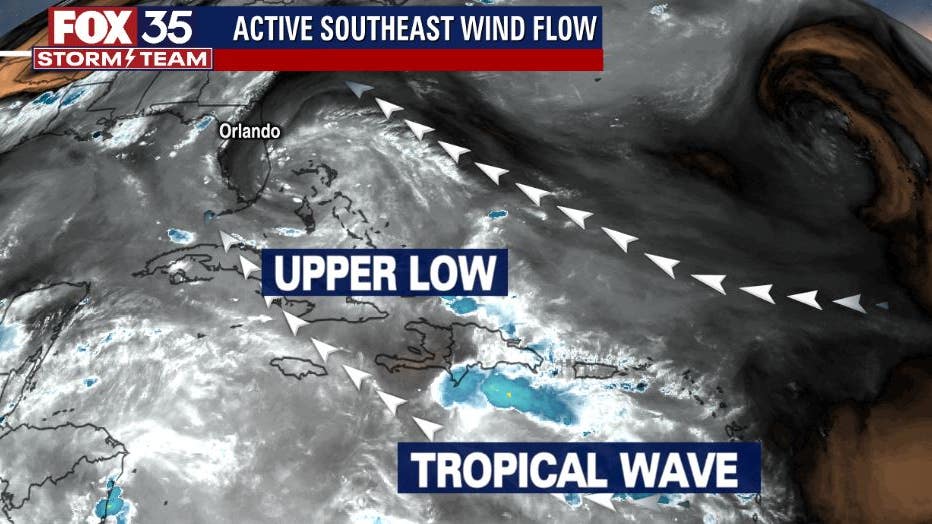 In addition, a tropical wave has moved through the Caribbean islands. The wave will drag in quite a bit of tropical moisture as the northern edge of the wave moves across Central Florida.