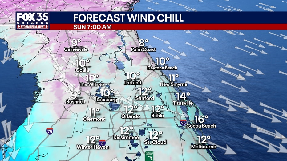 Orlando and all of Central Florida is under an extreme cold warning. Temperatures begin to drop Saturday afternoon and with the wind chill, temperatures will feel like their in the single digitals. Orlando forecast to be near 12 degrees, Leesburg at 9 degrees, Ocala as cold as 8 degrees. FOX 35 meteorologist T.J. Springer has the latest cold forecast and timeline.