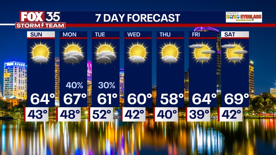 After a cold front moved through today, clear and sunny skies are back for your Sunday. Cooler air will push back into Central Florida next week dropping out temperatures further into the 60s ad 50s. FOX 35 Meteorologist Laurel Blanchard has your forecast and the timing of our next cold front.
