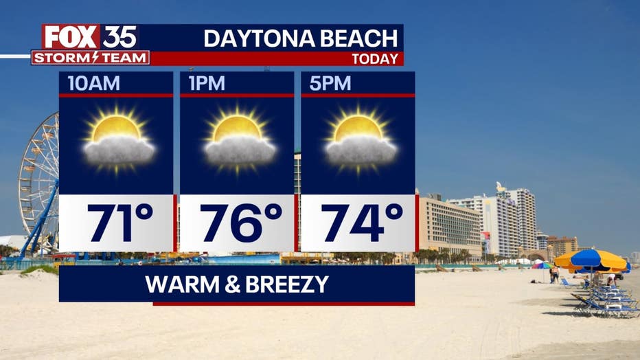 BEACH FORECAST: A gusty south wind continues which bring about comfortable weather for the coastline with highs near 80. There remains a moderate rip current risk with surf of 2-4 feet so swimming near a lifeguard tower is recommended. Winds could gust up to 20-25 mph at times this afternoon.