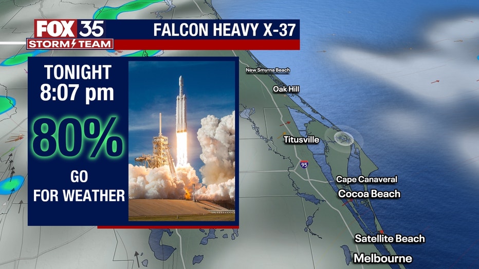The timing of the rain departing early is great news for SpaceX's double header launch tonight of its Falcon Heavy at 8:07 p.m. and the Falcon 9 taking Starlink satellites to orbit with a launch window of 11 p.m. to 3 a.m.