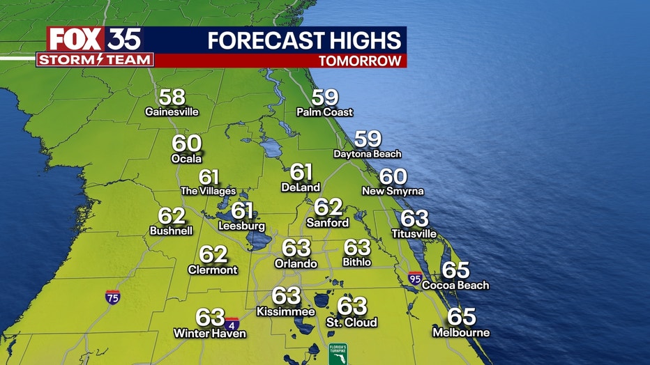 TONIGHT'S LOW: 47 degrees | TOMORROW'S HIGH: 63 degrees