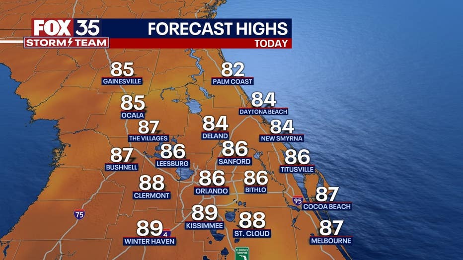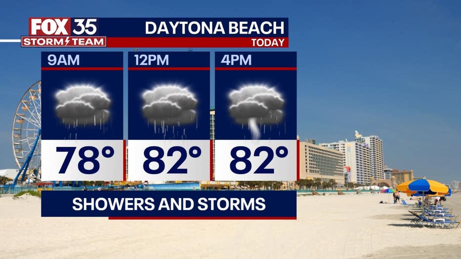 The weather will not be ideal for beach-goers today thanks to likely rain chances, breezy conditions, and an ongoing rip current risk. Periods of heavy rainfall will be possible anywhere from Flagler down to Melbourne with the risk of flooding in areas that have seen heavy rain in recent days. Highs will only warm into the low 80s from Daytona Beach and to the north with mid 80s farther south.