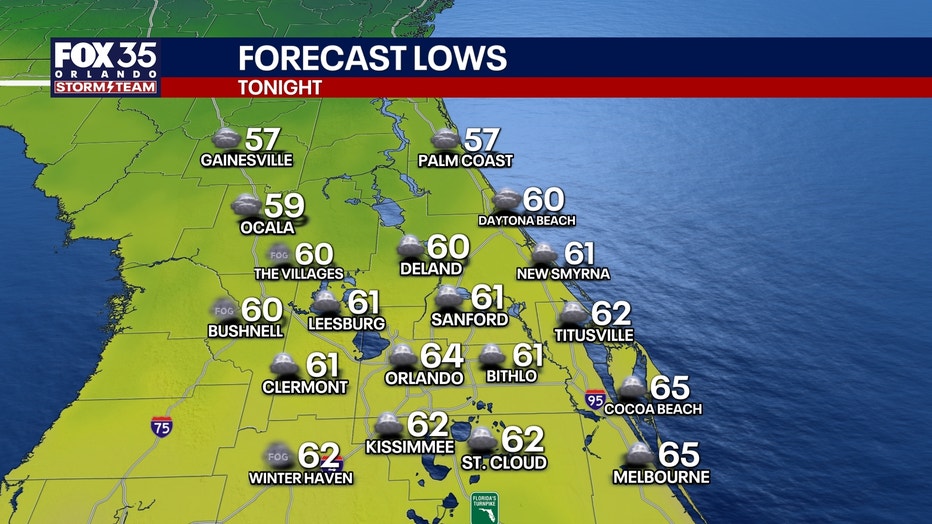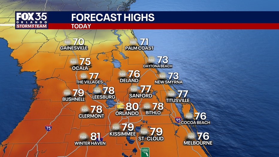 ORLANDO, Fla. - The warmth is the big headline to kick off the weekend, but we're also seeing some fog. Once that lifts, it'll be a beautiful day. Overnight, the potential for more fog develops because of the light wind. It'll be milder too, with lows falling only into the lower to middle 60s around Orlando.
