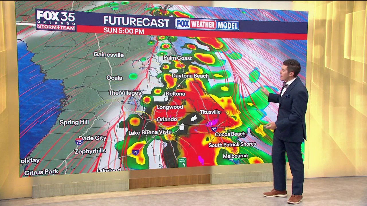 ORLANDO, Fla. - The weekend is ending on an unsettled note with numerous showers and storms on the table this afternoon and evening. This is thanks to some "upstairs energy" in the atmosphere as well as the sea breeze collision later today.